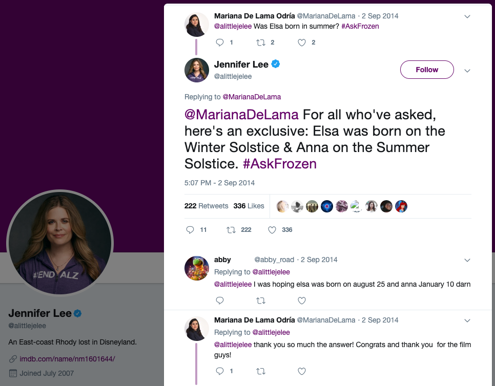 The only person who can give us a definite answer on Elsa’s birthday would be her mother Iduna, but since she is fictional and very much dead, we must turn to her “creative mother”, Jennifer Lee.