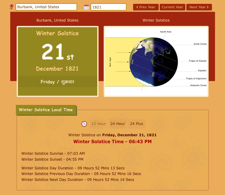 Wait a second, not so fast. We are not there yet. If you look closely at the picture above, you’ll notice that this Winter Solstice date is for Burbank, United States, where the Disney Animation Studios are located.